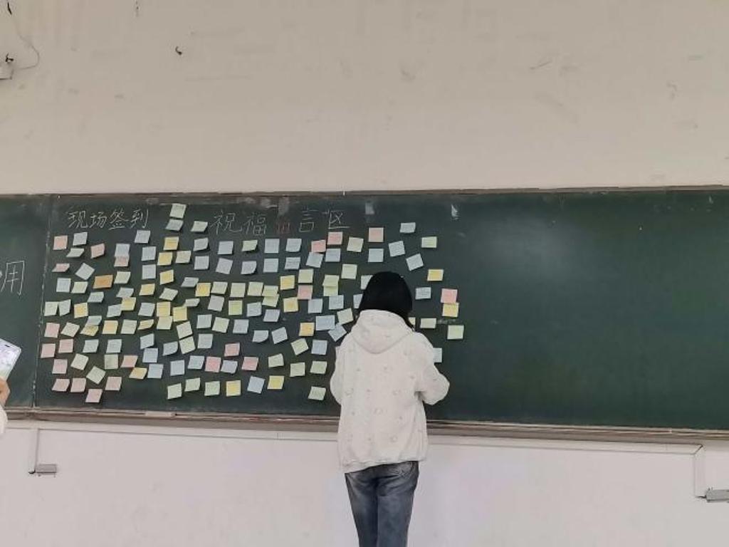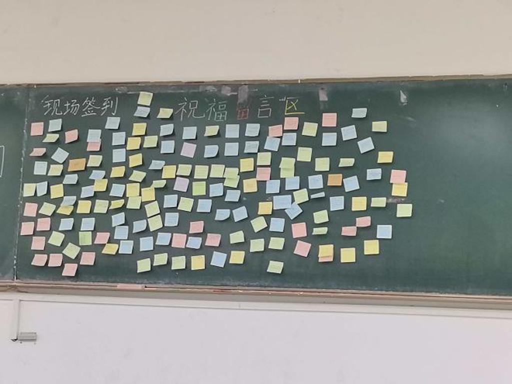活动设置了暖心祝福留言区,吸引了众多同学驻足参与。大家纷纷在彩色便签纸上写下真挚的祝福,并将其精心贴满展板。“化动力为学力,工笔绘就锦绣前程”、“反应速率百分百,上岸成功一研为定”、“历经催化与萃取,终将沉淀为硕士”……一条条巧妙融入化工专业术语的祝福语,不仅展现了学院的学科特色,更传递出对考研学子艰辛付出的深刻理解与殷切期盼。每一句暖心话语都如同一剂“强心针”,让备战学子在寒冬中倍感温暖。
