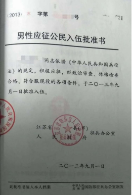 特别注意:《入伍批准书》一般存放在档案中,如无法提出原件,可复印后,加盖档案部门公章。