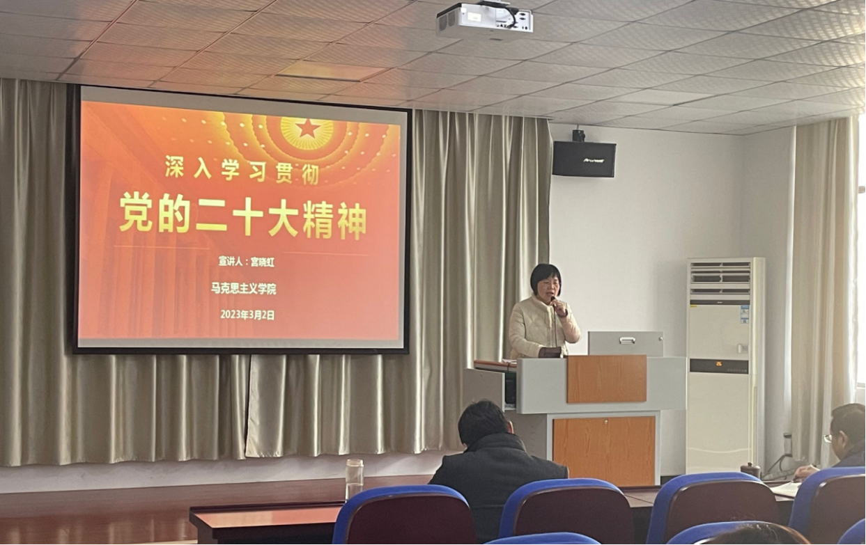 为深入学习宣传贯彻党的二十大精神,3月2日上午,校党委讲师团成员、马克思主义学院副院长宫晓虹应邀来成年人动漫 开展党的二十大精神专题宣讲,学院全体教师及学生代表在化工楼南207报告厅参加学习。
