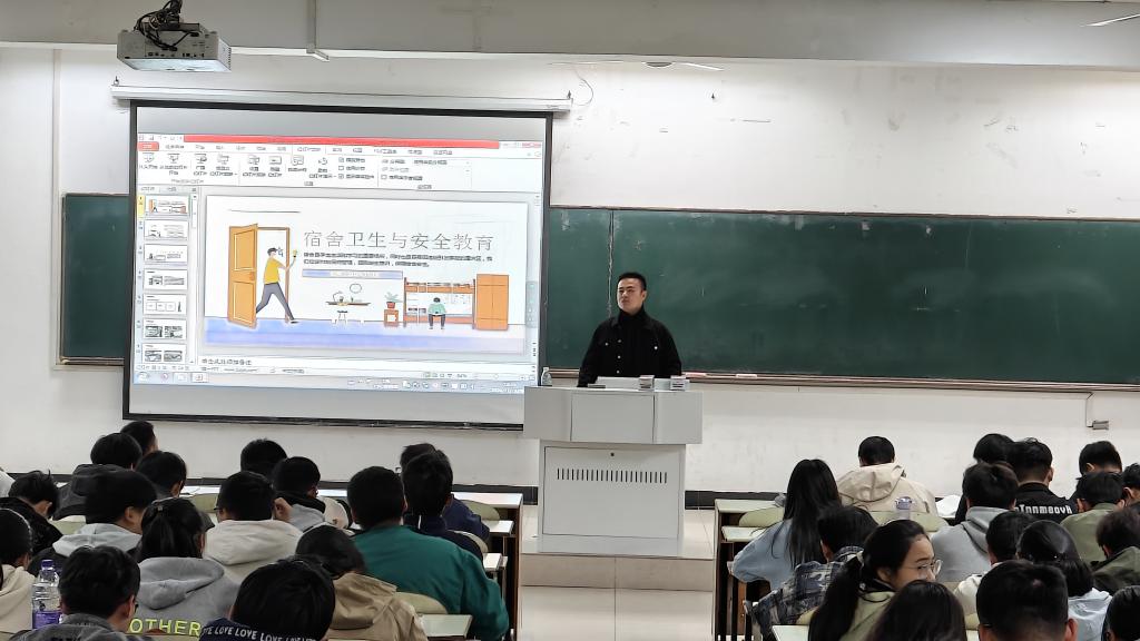 为提升大一新生宿舍卫生安全意识,提高同学们的自我管理能力,养成良好行为习惯。11月18日晚,成年人动漫 在教三南103开展了新生宿舍安全教育专题讲座,会议邀请了校后勤处学生公寓管理服务中心主任程建轩作为主讲,学院2024级辅导员及全体新生参加会议。
