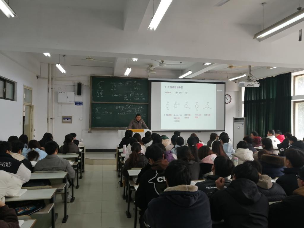 在了解学院师生上课等教学运行整体情况后,黄宇弦一行走进课堂听取了林鹏老师《有机化学A2》等课程。从课堂纪律以及学生到课情况来看,开学初教学运行良好,学生出勤率高,课堂教学秩序井然有序,展现了我院师生良好的精神风貌。