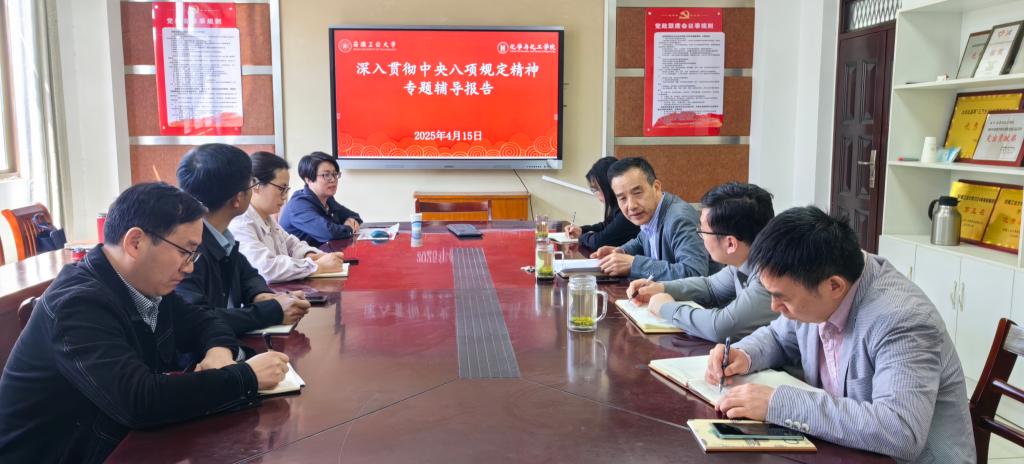 4月15日上午,成年人动漫 党委在化工楼南221举行深入贯彻中央八项规定精神专题辅导报告。会议特邀马克思主义学院王凌云老师主讲,学院领导班子成员、党委委员参加报告会,报告会由学院党委书记黄宇弦主持。