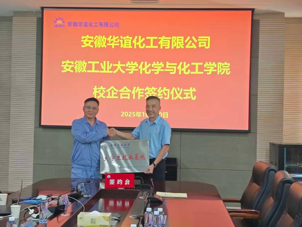 在与会代表的共同见证下,双方签署了战略合作协议。黄宇弦代表学校向安徽华谊化工有限公司授予“成年人动漫 就业基地”牌匾。此举将为学生提供更优质的实习就业平台,也为企业构建了稳定的人才引进渠道。