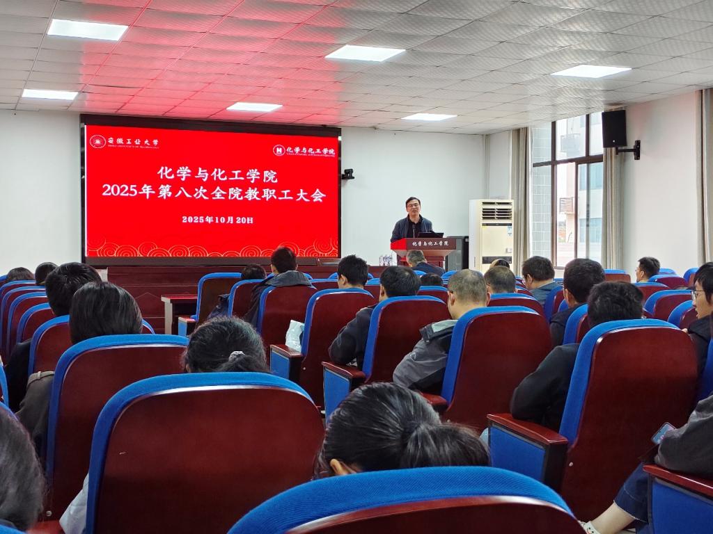2025年10月20日下午,成年人动漫 在化工楼南207报告厅召开2025年第八次全院教职工大会。会议由副院长(主持行政工作)韩新亚主持。