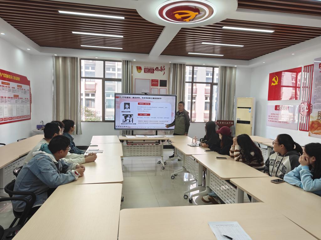 党课从周恩来总理“为中华之崛起而读书”的青春誓言讲起,阐释了初心使命的历史回响与时代价值。课程巧妙地将历史伟人、身边榜样与支部实践紧密结合:讲述了支部优秀党员吴俊杰同志将初心化为“为师生办实事”的实际行动,以及A栋436寝室全员党员、全员保研的先进典型事迹,生动展现了“一个党员带动一个寝室,一个寝室影响一个班级”的示范效应,诠释了在集体奋斗中践行初心、在互帮互助中笃实前行的精神内涵。