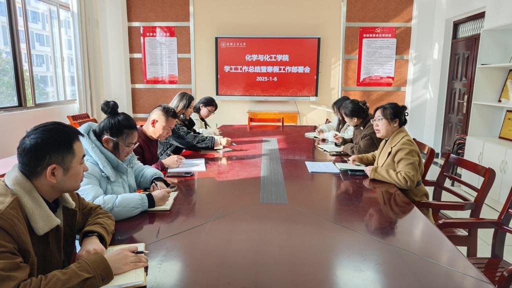 为落实立德树人根本任务,加强辅导员队伍规范化、制度化建设,持续推进学院学生工作高质量发展,同时为切实做好2024-2025学年寒假前后安全工作,有效防范化解各类安全风险,保障师生寒假期间的生命安全和身心健康。1月6日上午,学院在化工楼南221会议室召开2024年学院学生工作年终总结暨寒假工作部署会。学院党委副书记、纪委书记、副院长冀秀芝和全体辅导员参加。