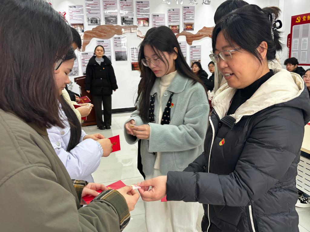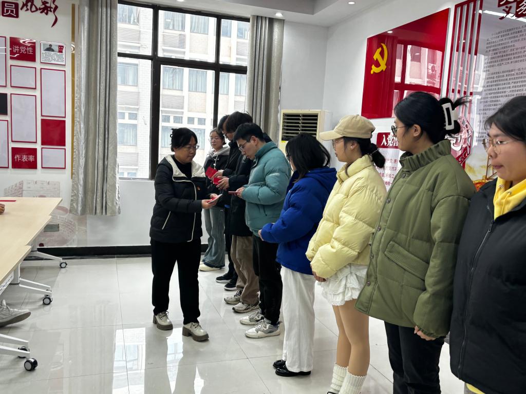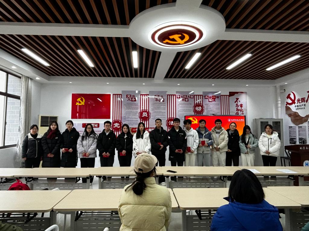2024年12月24日,成年人动漫 2024年下半年新发展党员入党宣誓仪式在秀山化工楼南206党员活动室举行。学院党委书记黄宇弦、学院党委副书记、纪委书记、副院长冀秀芝、各学生党支部书记、党员代表及2024年下半年全体新发展党员参加了宣誓仪式,仪式由院分党校班主任朱圣兰主持。