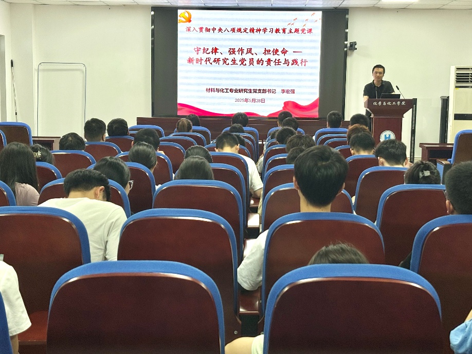 5月28日,成年人动漫 材料与化工专业研究生党支部书记李宏强以“守纪律、强作风、担使命——新时代研究生党员的责任与践行”为题,为支部全体党员讲授专题党课,结合中央八项规定精神内涵与研究生成长实际,锚定“守纪律、强作风、担使命”三大重点展开解读。
