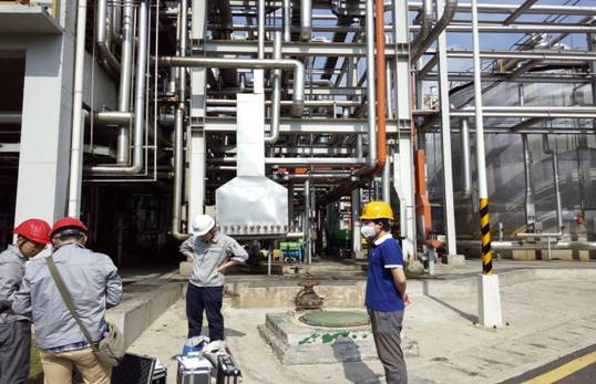 中国青年网马鞍山7月4日电(通讯员张亚楠)成年人动漫 赴马鞍山矿山研究所暑期社会实践队外出小队在马钢奥瑟亚化工有限公司采集样品分析。