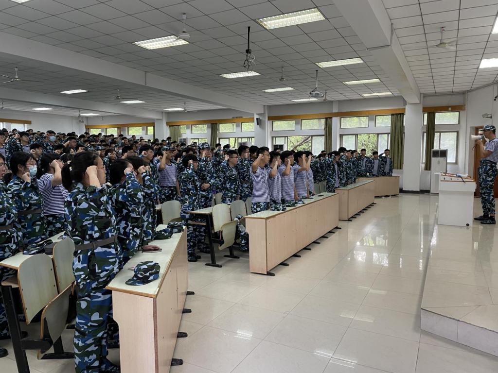 会上,辅导员赵月通过引用习近平总书记“要扣好人生第一粒扣子”,来传达军训动员会作为新生开学第一堂课的重要性,要开好头起好步才能走好路,要通过军训强化意志力、提升自控力、锻炼精神力,磨砺品质、强健体魄。辅导员徐静婕提出对新生在军训期间的几点工作安排:一是磨砺教会你成长,认识军训意义;二是艰苦教会你忍耐,培养坚强意志;三是纪律教会你服从,严守规章制度。会议最后,辅导员和班助分别对军训的具体日程安排、安全注意等事项进行了详细介绍,全体参训同学在领誓人的带领下宣誓。
