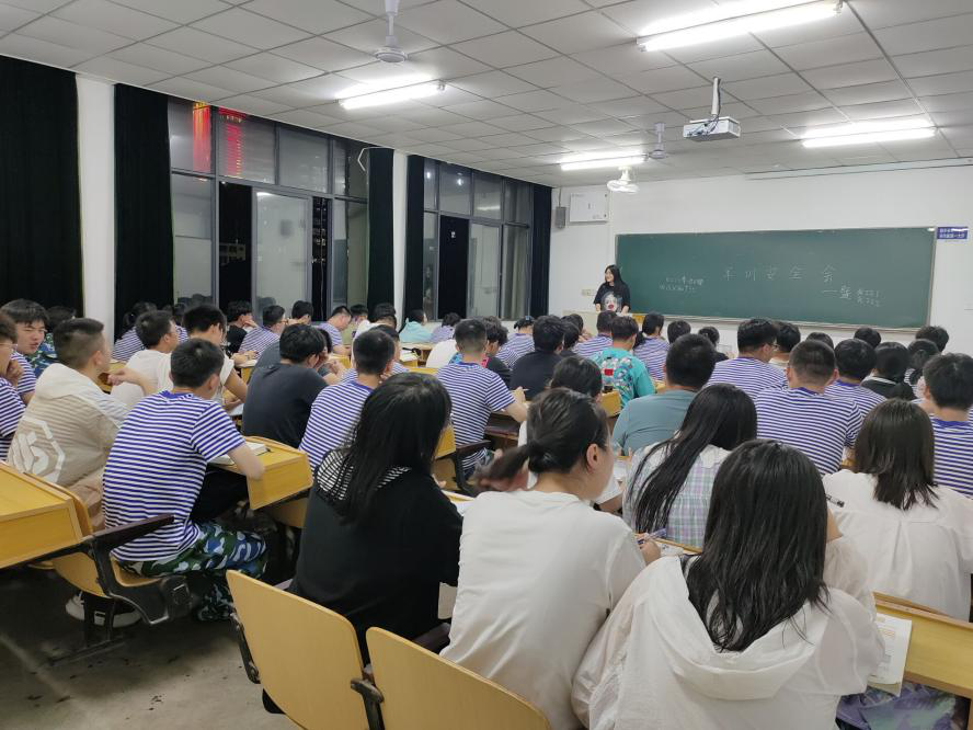 会上,辅导员赵月传达学习了学校关于疫情防控的各项政策,指出要增强责任意识和风险防范意识。安全员在军训期间要发挥好安全引导作用,切实深入同学们中,了解需求,关注健康,做好军训期间的各项服务工作。辅导员徐静婕对各班军训负责人提出要求,一要切实做好安全教育管理,提高新生的安全意识,既要严格管理,又要人文关怀;二要严格执行防疫政策,加大防疫安全宣传力度,按时完成每一次核酸检测;三是持续抓好心理健康工作,开展心理健康教育和排查,做好心理疏导;四是坚决落实网络安全准则,了解网络诈骗常见形式,提高反诈骗意识。之后,以年级为单位各专业安全员分别召开安全教育班会。