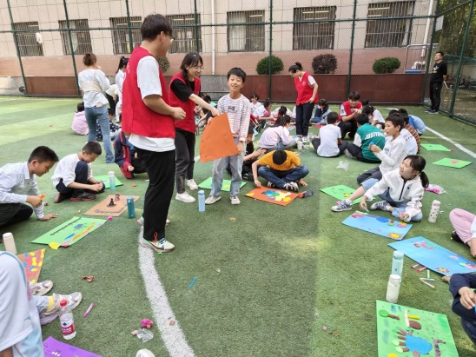 活动首先以开场小游戏拉开序幕,帮助大家放松状态,并向同学们介绍了具体活动内容,进行了分组。志愿者们围绕主题,引导学生依次进行制作地图、团体作画,活动中,同学们或独自认真思考,或两两互相合作,一幅幅作品稚嫩可爱,一段段解读生动有趣,同学们在活动中学会了更好的表达、分享、合作,共同度过了一段美好时光。