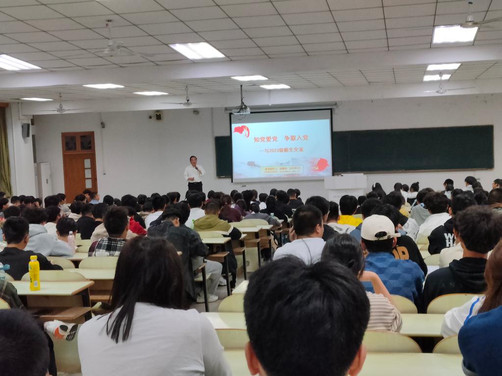 会上,胡源申教授以“知党爱党,争取入党”为主题,向同学们详细介绍了社会主义的发展历程与党的百年奋斗历史,阐释了正确的“三观”对青年的成长成才具有重要影响,指导当代大学生如何树立正确的“三观”,实现个人的全面发展。他鼓励同学们要自信自强,做有理想、敢担当、能吃苦、肯奋斗的新时代好青年,让信仰的种子生根发芽,在思想与行动上积极向党组织靠拢。