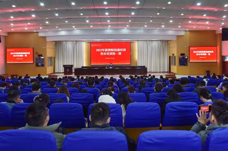 11月16日上午,校党委书记陆林以《大力弘扬教育家精神,在教育强国建设新征程上践行教师的使命担当》为题,结合新的背景形势和学校实际,从明确教育强国的战略定位、传承和弘扬教育家精神、强化教师的使命担当三个方面,为2023年新教师讲授岗前培训“校本课程第一课”。学校近三年入职教师参加培训。