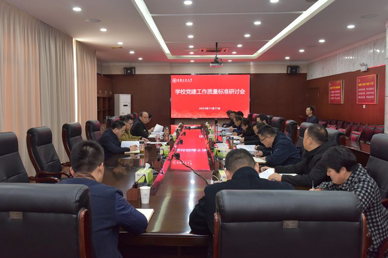 11月17日上午,根据培育创建“全省党建工作示范高校”构建“三三五”党建工作大格局相关工作安排,学校召开党建工作质量标准研讨会。校党委书记陆林,校党委常委、副校长刘明出席会议,党办校办、纪委办、组织部、巡察办负责人,冶金工程学院、材料科学与工程学院、电气与信息工程学院、计算机科学与技术学院、管理科学与工程学院、外国语学院、离退休工作处、后勤处等单位的党委书记参加会议。会议由刘明主持。